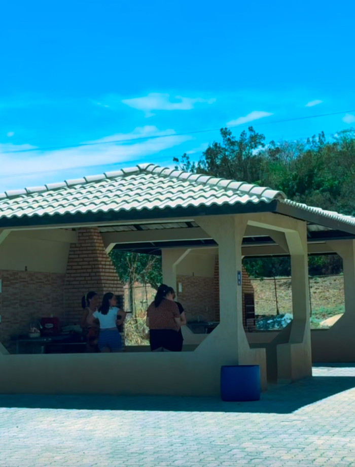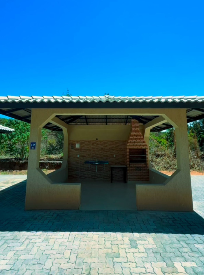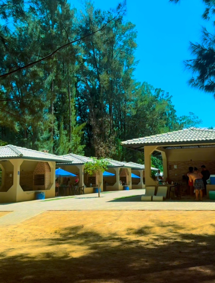 Quem busca mais conforto pode alugar um bangalô completo, equipado com churrasqueira, ponto de energia, pia, mesas e cadeiras — ideal para reunir a galera com privacidade e comodidade.